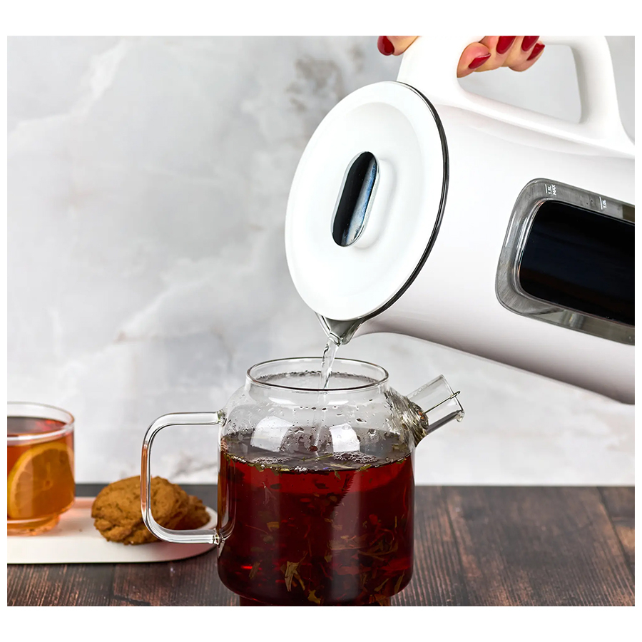 Электрический чайник со стеклянной колбой работает в режиме кипячения, нагрева и поддержания заданной температуры. 6 режимов от 40°C до 100°C полностью перекрывают потребность в воде определенной температуры для заваривания напитков, смесей и раскрытия их истинных вкусов: