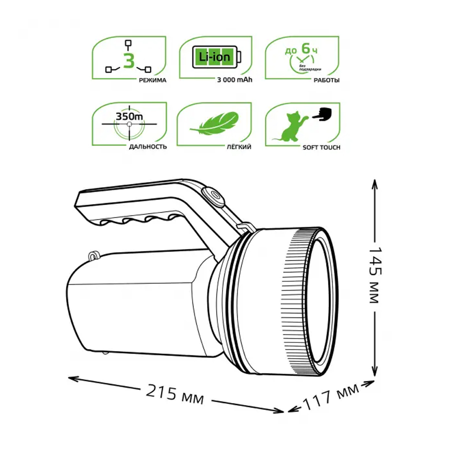 Классический дизайн корпуса с качественными комплектующими. Мощный светодиод, емкий аккумулятор обеспечат комфортное освещение и длительную непрерывную работу. Подходит для бытового применения и решения профессиональных задач.