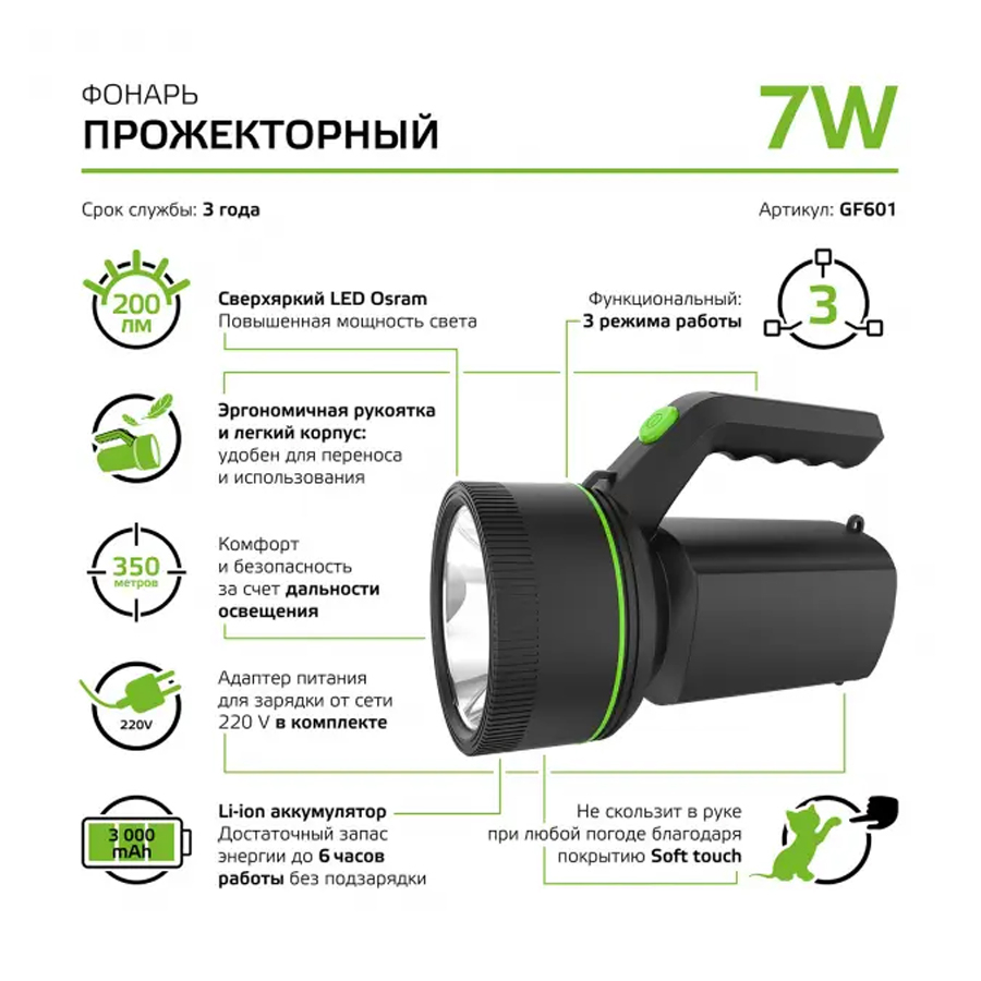Фонарь прожекторный Gauss GFL601 (GF601)