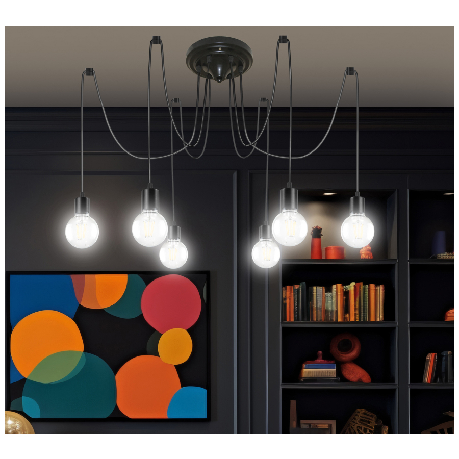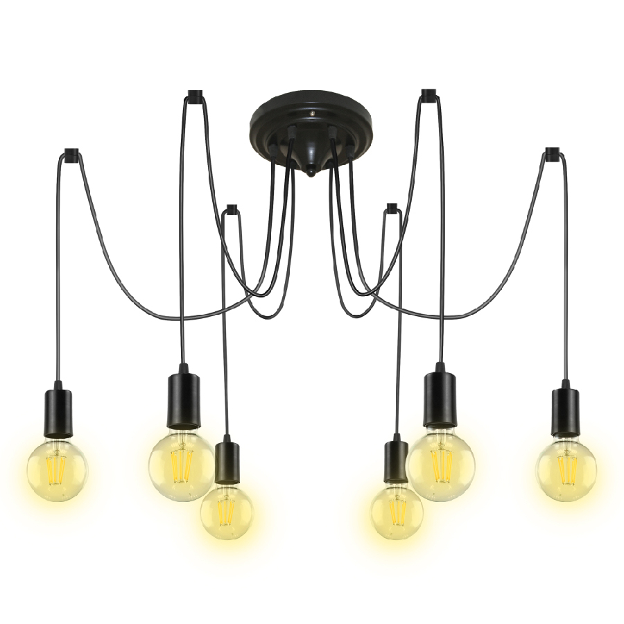 Светильник бытовой потолочный 2061/6 (чёрный) великолепно впишется в обстановку в стиле лофт. Светильник имеет высоту 140 см. Максимальная мощность ламп 40 Вт. У модели используются лампочки с цоколем E27. Площадь освещения 18 кв.м.