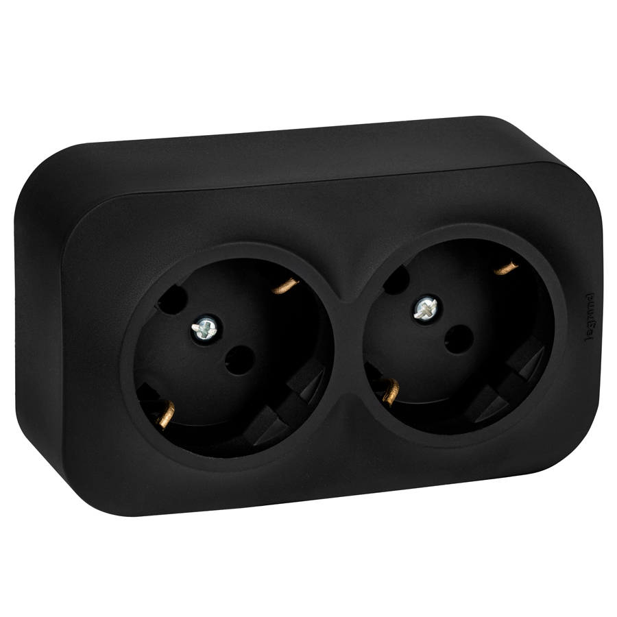 Розетка двухместная с заземлением с защитными шторками открытого монтажа серии Quteo. Применяется для электропитания в зданиях с проводкой с заземлением. Подходит как для скрытой, так и для открытой проводки. Защитные шторки ограничивают доступ к токоведущим контактам, который открывается только при подключении вилки. Глубокий матовый чёрный цвет. Стойкий к износу и повреждениям, тактильно приятный. Все розетки в блоке соединены между собой токоведущими шинами, что обеспечивает быстрый монтаж. Гнёзда розеток расположены под углом 45 градусов - удобное подключение вилок различного типа. Контактная группа сохраняет плотный контакт с вилкой при длительной эксплуатации. Зажимы для присоединения проводников винтовые, с невыпадающими винтами. Все токоведущие части розетки имеют защиту от случайного прикосновения. Механизм и корпус изготовлены из поликарбоната - обладает высокой электробезопасностью, не поддерживает горение.