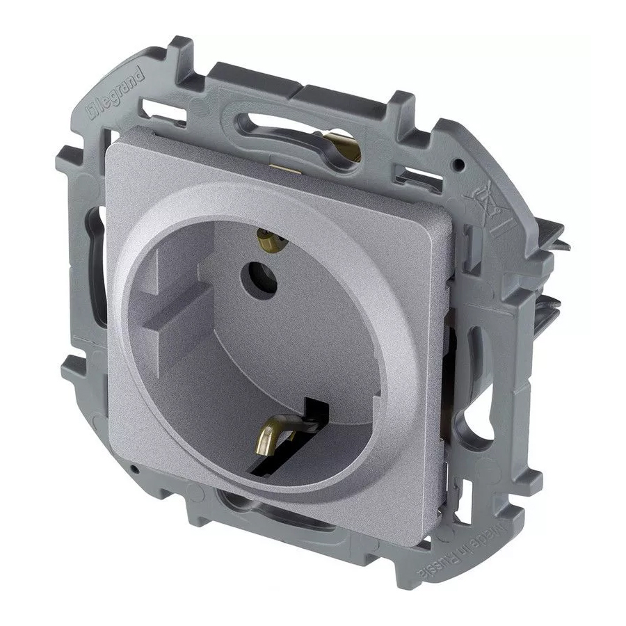 Розетка со шторками 2P + E Legrand Inspiria (673732) алюминий