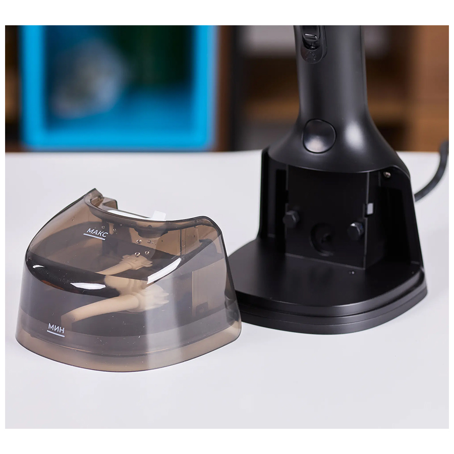 Для нагрева отпаривателю необходимо всего лишь 30 секунд, после чего им можно полноценно пользоваться. Объем воды в баке составляет 300 мл., полное наполнение позволит проработать до 10 мин, чего вполне хватит, чтобы отпарить нужную вещь. Модель со съемным резервуаром для воды – удобно наполнять и сливать остатки воды.