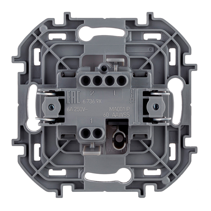 Переключатель кнопочный одноклавишный производителя Legrand серии Inspiria предназначен для установки в электрических сетях с напряжением 250 Вольт, силой тока 6 Ампер. Он имеет белый цвет, пластиковую клавишу, компактный механизм с глубиной 20 мм и применяется для скрытого монтажа. Переключатель используется для импульсного управления электрическими звонками, реле, контакторами, светорегуляторами в электрических сетях жилых и общественных зданий. Проходной переключатель рассчитан на схему подключения на 2 направления без фиксации. Кнопка-переключатель может устанавливаться в распор или на шурупах. Безвинтовые зажимы для присоединения проводов обеспечивают быстрое подключение и отключение, гарантируют надежное и долговечное соединение и не требуют обслуживания. Все токоведущие части выключателя имеют защиту от случайного прикосновения. Степень защиты изделия IP20.
