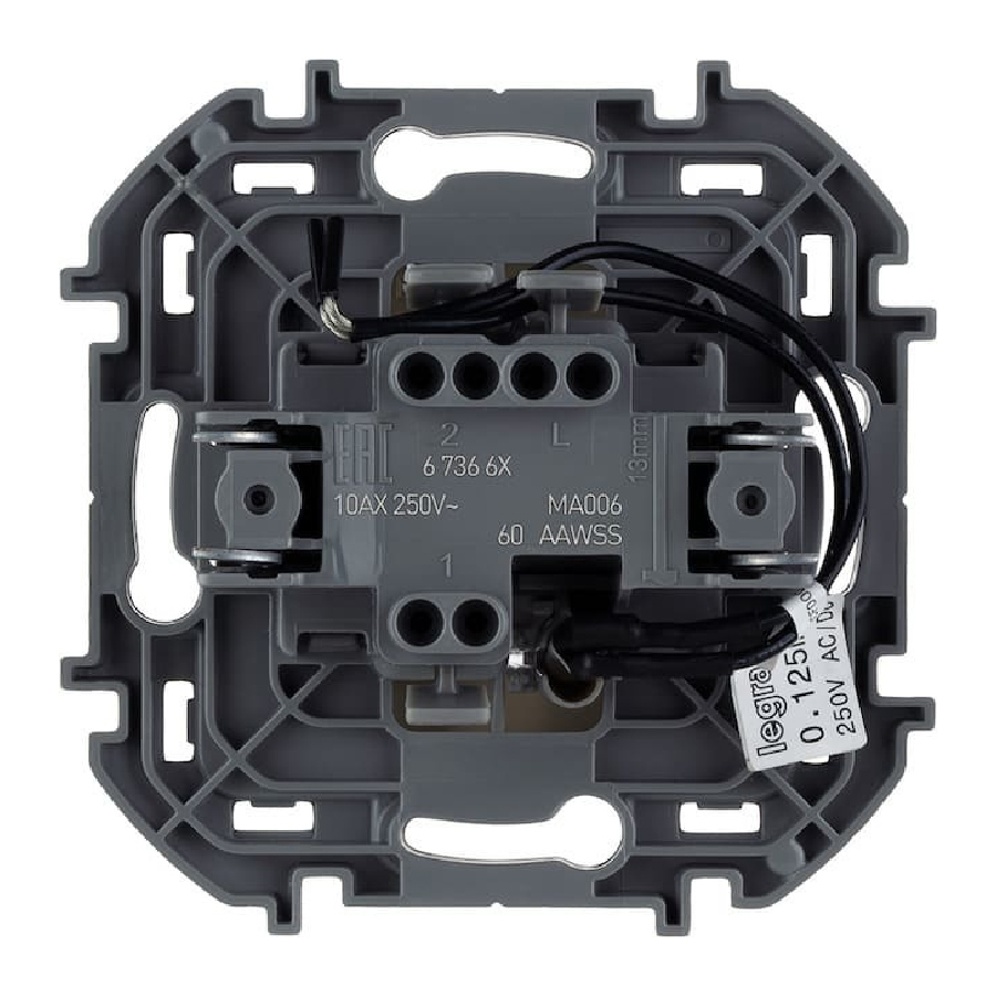 Переключатель одноклавишный Legrand Inspiria для скрытого монтажа, номинальный ток 10 А, напряжение ~250В.