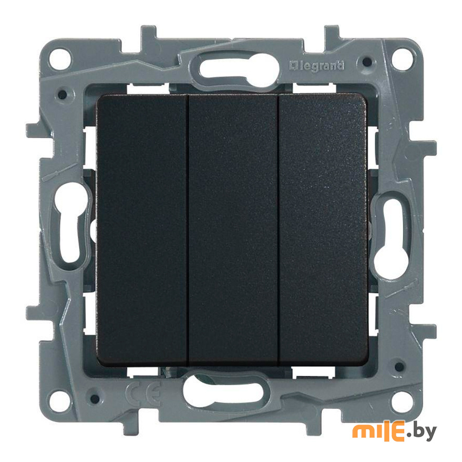 Выключатель трёхклавишный Legrand Etika для скрытого монтажа, номинальный ток 10 А, цвет антрацит. Предназначен для независимого управления тремя нагрузками с одного места. Подходит для управления многорожковыми люстрами и осветительными приборами с большим количеством ламп. Материал клавиш - матовый AБС пластик, стоек к выгоранию и загрязнениям. Ход клавиш чёткий, не громкий. Все токоведущие части выключателя имеют защиту от случайного прикосновения - Для присоединения проводов применены винтовые зажимы. Корпус механизма- высококачественный поликарбонат, не проводит электрический ток, не поддерживает горение, ударопрочен. Специальный профиль внешнего контура механизма обеспечивает простоту и безошибочность многопостового монтажа. Острые крепёжные лапки с широким углом раскрытия обеспечивают надёжную фиксацию в монтажной коробке.