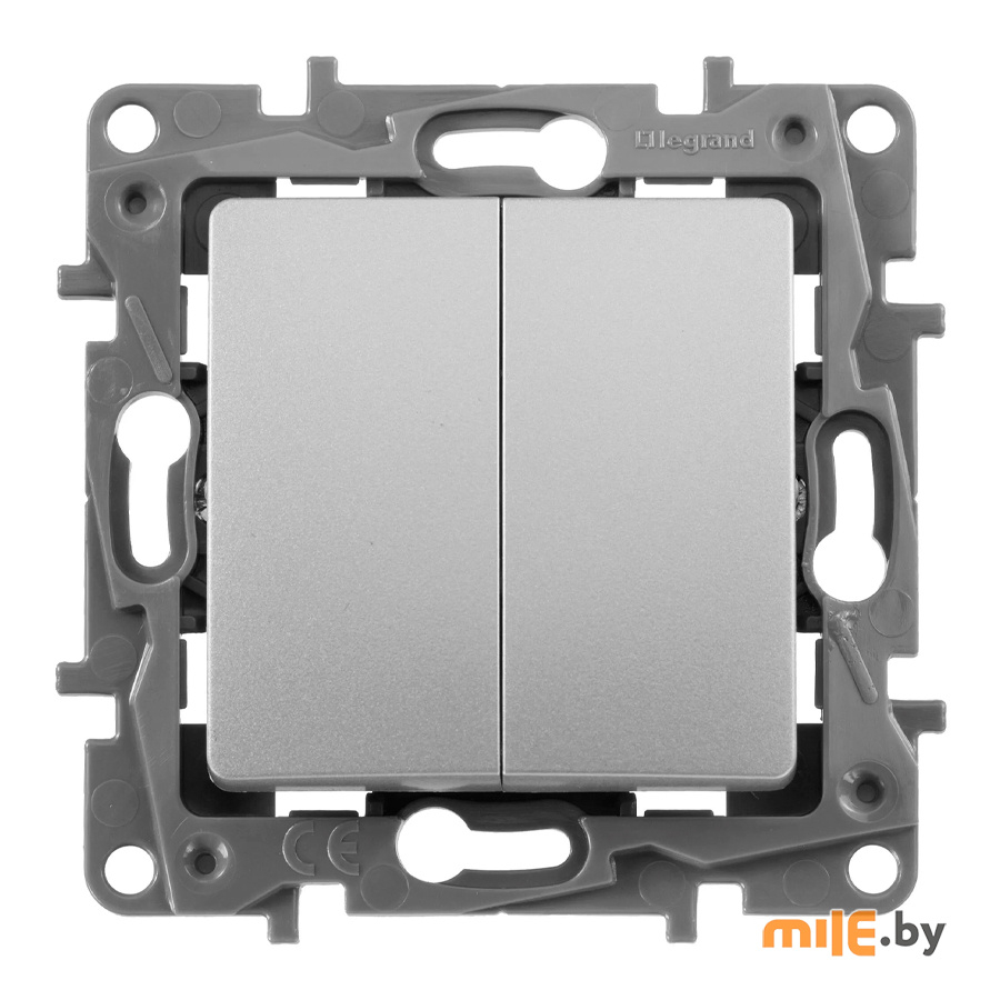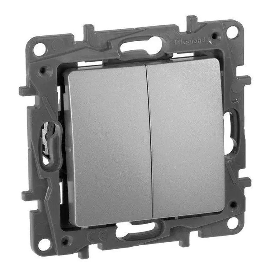 Переключатель двухклавишный Legrand Etika для скрытого монтажа, номинальный ток 10 А, цвет алюминий. Предназначен для управления двумя нагрузками с одного или с двух мест.