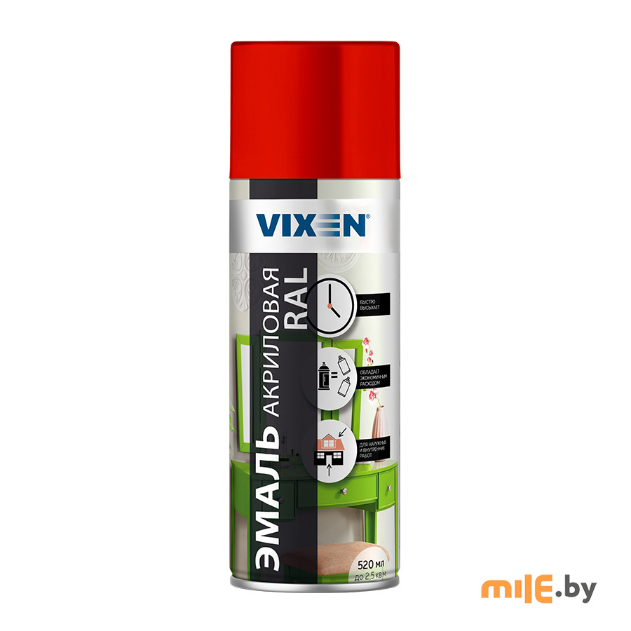 Эмаль акриловая Vixen транспортный красный (RAL 3020) 520 мл