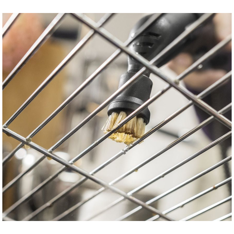 При помощи комплекта с мощной щеткой можно легко и быстро удалить стойкую грязь и нагар. не оставляя следов. Особенно хорошо комплект подходит для очистки решеток в духовых шкафах или решеток гриля. Комплект состоит из 2 латунных и 2 мощных щеток и является прекрасным дополнением к другим круглым щеткам. незаменимым в повседневной уборке и гарантирующим ее самую высокую эффективность. Прочная щетина. с высокой износостойкостью. без труда справится со стойкими загрязнениями и нагаром – например. на решетках в духовых шкафах и гриле. а также на варочной панели. Благодаря исключительно долговечной щетине круглые щетки выделяются особо высокой эффективностью среди щеток для пароочистителей. Идеальный вариант для использования на устойчивых к механическому воздействию