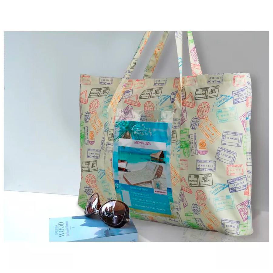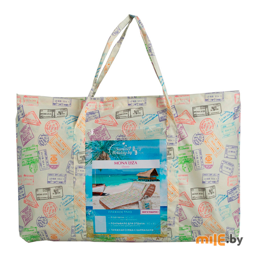 Приятным дополнением к коллекции Mona Liza by Serg Look - Summer Holiday непременно станет "Пляжное трио", а именно: - покрывало стеганое, размер 180 см х 80 см, ткань верха: тик 100%п/э, наполнитель роялон 100% п/э, плотность наполнителя 100гр/м2; - подушка 40 см х 60 см с дополнительными зонами комфорта, сетка трикотажная - для улучшения воздухообмена, кассета с натуральным кокосовым волокном - поддержка шеи; - сумка пляжная, текстильная с тематическим принтом в стиле коллекции.