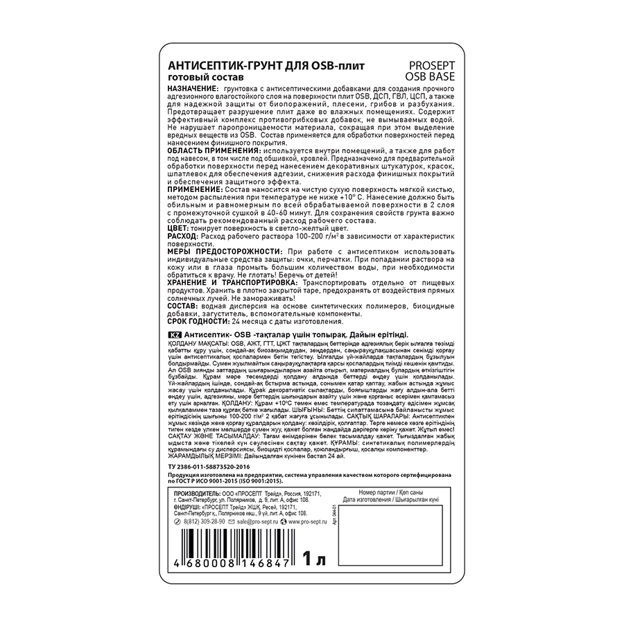 Антисептик-грунт Prosept Osb Base для плит OSB (044-01) 1 л