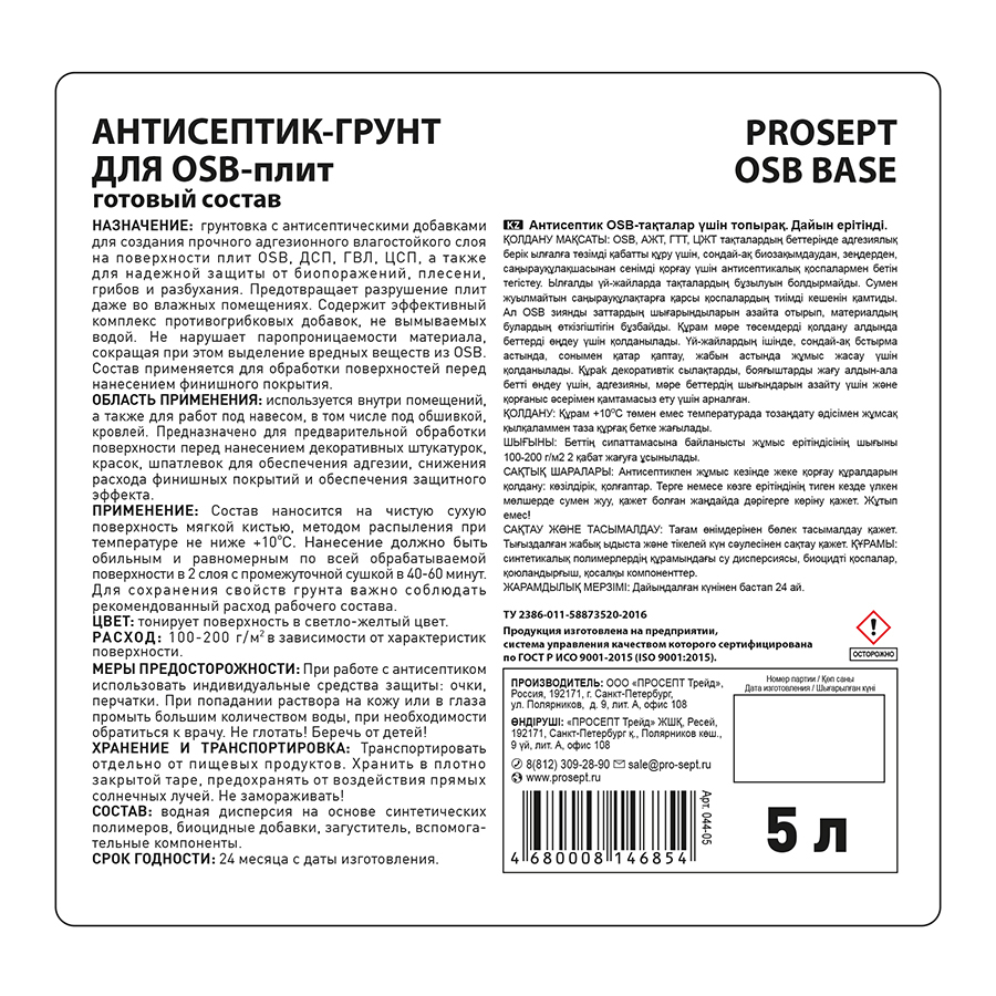 Антисептик-грунт Prosept Osb Base для плит OSB (044-05) 5 л