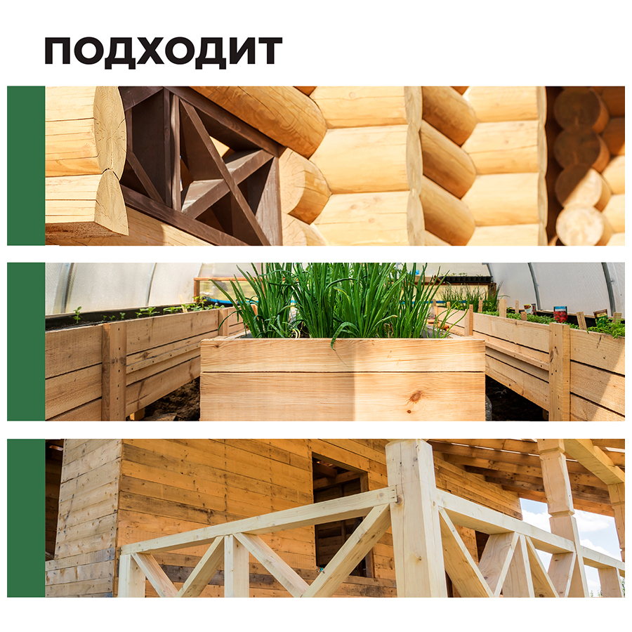 Работы по обработке древесины рекомендуется проводить при температуре окружающей среды и обрабатываемой поверхности не ниже +5°С. Обработанную древесину следует защитить от попадания воды и атмосферных осадков до полного высыхания и фиксации действующих веществ - 24 часа при температуре 16-20°С и относительной влажности воздуха 70%.
