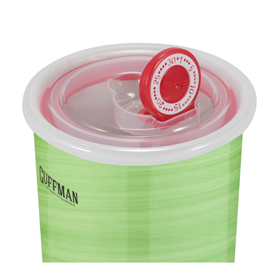 Керамическая банка Guffman с вакуумной крышкой для хранения продуктов, большая. Идеально подходит для хранения сыпучих продуктов и готовых блюд. Контейнер изготовлен из высококачественной керамики, благодаря этому не впитывает запахи и легко моется. Вакуумная крышка выполнена из ABS-пластика и оснащена клапаном, имеющим механизм для удаления воздуха, для этого необходимо просто открыть клапан, надавить на крышку и закрыть его. На крышке также имеется крутящийся диск с отметками дней (31 деление), с помощью которого вы можете устанавливать день, когда положили в контейнер продукты и контролировать срок годности и/или хранения. Контейнер универсален и подходит для хранения сыпучих продуктов и готовых блюд. Использование изделия в духовом шкафу и микроволновой печи разрешено без крышки. Можно мыть в посудомоечной машине.