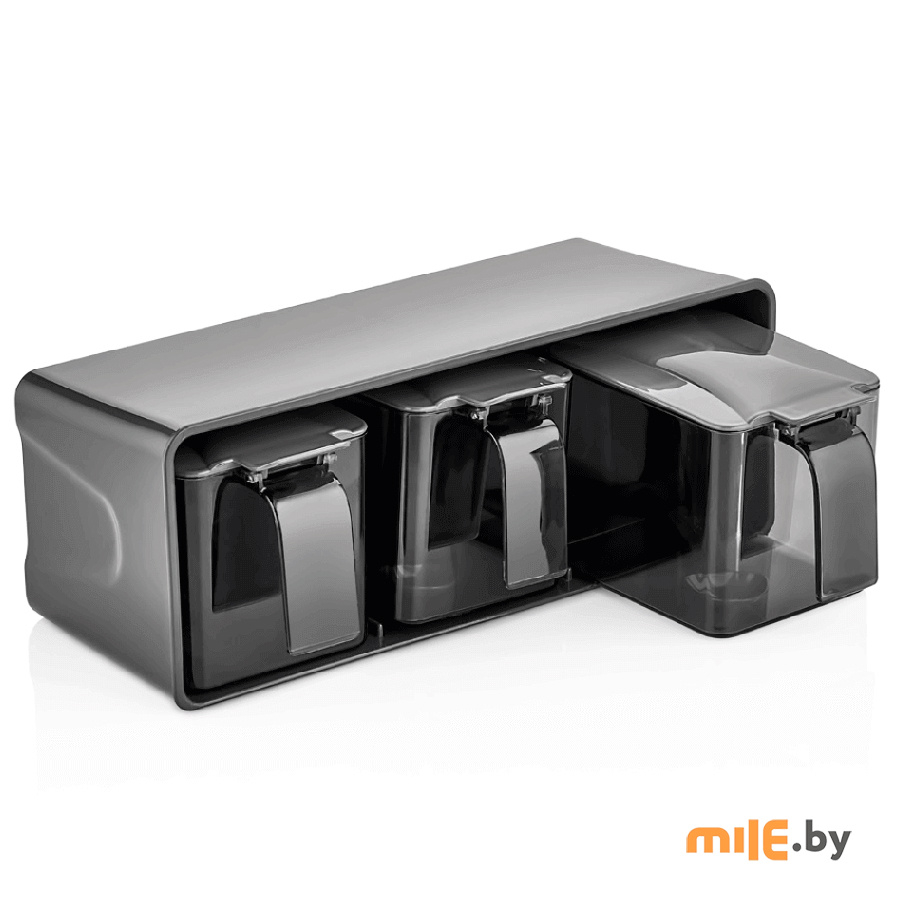 Набор емкостей для специй в подставке с ложками Qlux (L-00677) 3 шт. 600 мл