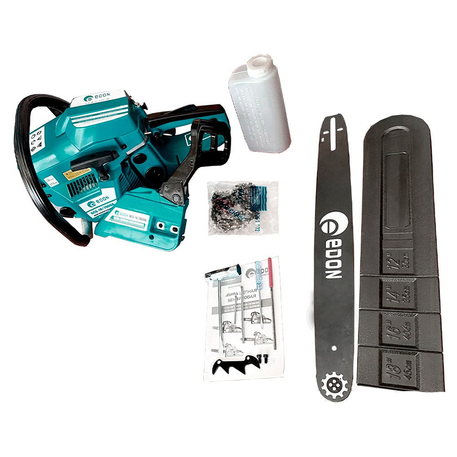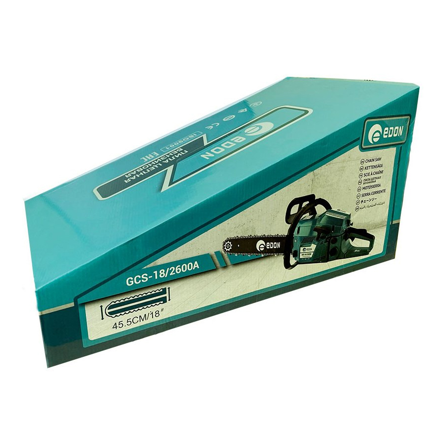 Пила цепная бензиновая Edon GCS-18/2600A - универсальный инструмент для распиловки древесины различных пород, заготовки дров и выполнения других деревообрабатывающих работ в бытовых условия.
