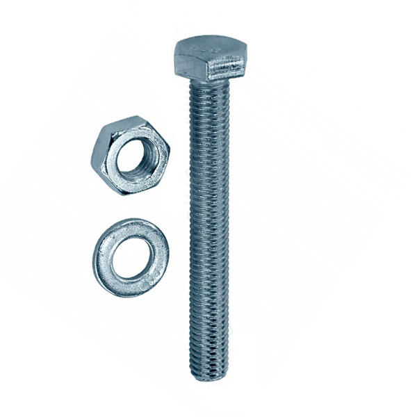 Болт оцинкованный с шестигранной головкой представляет собой крепёжную резьбовую деталь, имеющую вид цилиндрического стержня. Одна часть болта имеет наружную резьбу, предназначенную для накручивания одной или более гаек, с другой стороны этот стержень снабжён головкой имеющей шестигранную форму, подходящую под гаечный ключ. Как правило, применяют болты при сборке разборных конструкций. Преимуществом такого вида соединения является то, что его легко можно заменить в том случае, если болты по какой-либо причине вышли из строя, либо возникла такая необходимость. Оцинкованные болты используют при сборке изделий, в которых внешний вид имеет значение. Такие болты не подвержены коррозии и сохраняют презентабельный вид на протяжении долгого времени. Шайба усиленная применяется в комплексе с болтами и подкладывается под гайку. Служит для снижения опорного давления элементами крепежа на поверхность, а также для предотвращения самоотвинчивания крепёжной детали.