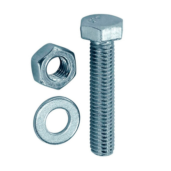 Болт оцинкованный с шестигранной головкой представляет собой крепёжную резьбовую деталь, имеющую вид цилиндрического стержня. Одна часть болта имеет наружную резьбу, предназначенную для накручивания одной или более гаек, с другой стороны этот стержень снабжён головкой имеющей шестигранную форму, подходящую под гаечный ключ. Как правило, применяют болты при сборке разборных конструкций. Преимуществом такого вида соединения является то, что его легко можно заменить в том случае, если болты по какой-либо причине вышли из строя, либо возникла такая необходимость. Оцинкованные болты используют при сборке изделий, в которых внешний вид имеет значение. Такие болты не подвержены коррозии и сохраняют презентабельный вид на протяжении долгого времени. Шайба усиленная применяется в комплексе с болтами и подкладывается под гайку. Служит для снижения опорного давления элементами крепежа на поверхность, а также для предотвращения самоотвинчивания крепёжной детали.
