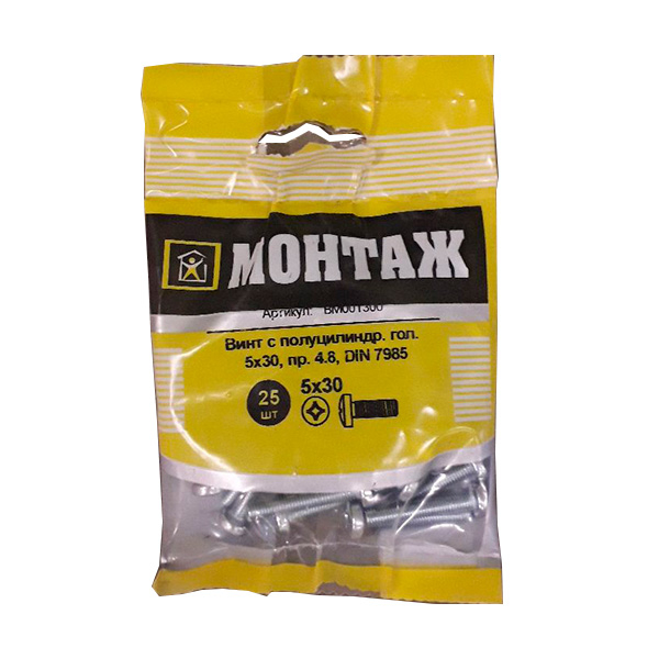 Винт с полуцилиндрической головкой Монтаж (BM001300) 5x30 мм 25 шт.