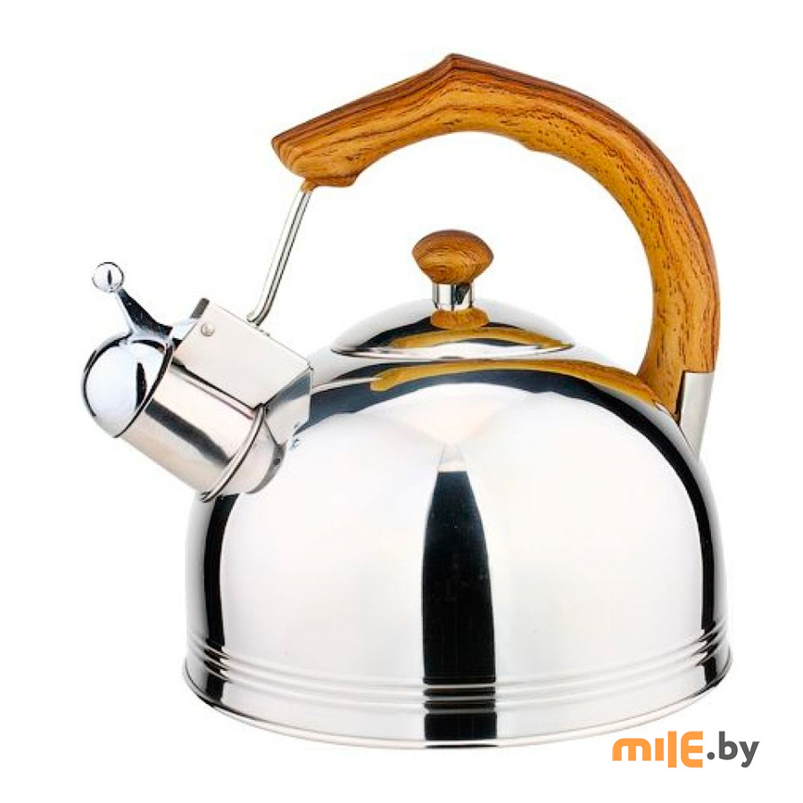 Чайник имеет фиксированную нескользящую ручку, выполненную из бакелита. Особенность бакелитовых ручек состоит в том, что они практически не нагреваются даже при длительном нагреве. Клапан свистка, защитит руки при разливании кипятка. Свисток вовремя оповестит Вас о закипании воды. Хорошо зафиксированная и плотно прилегающая крышка дольше сохранит тепло.