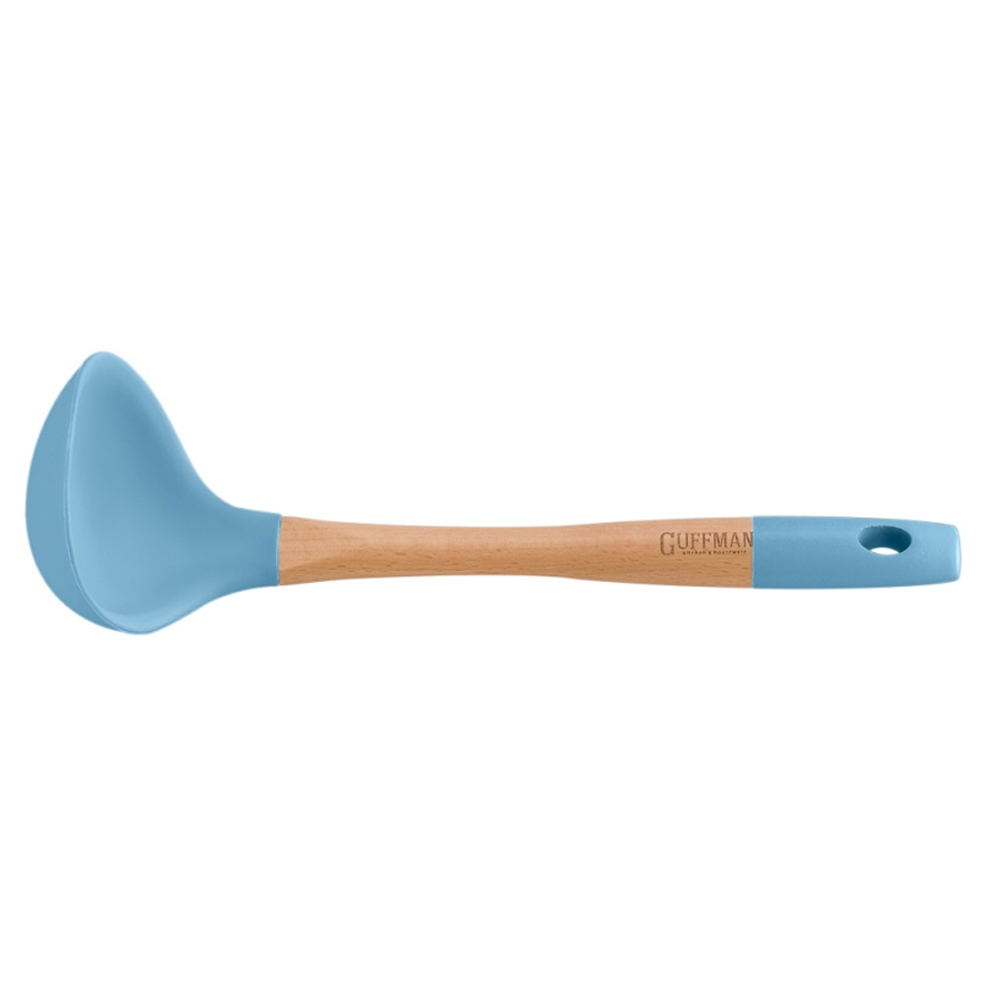 Рукоятка половника изготовлена из экологически чистого бамбука, наконечник из стойкого к термической обработке силикона. Модель представлена в приятном голубом и белом цвете.