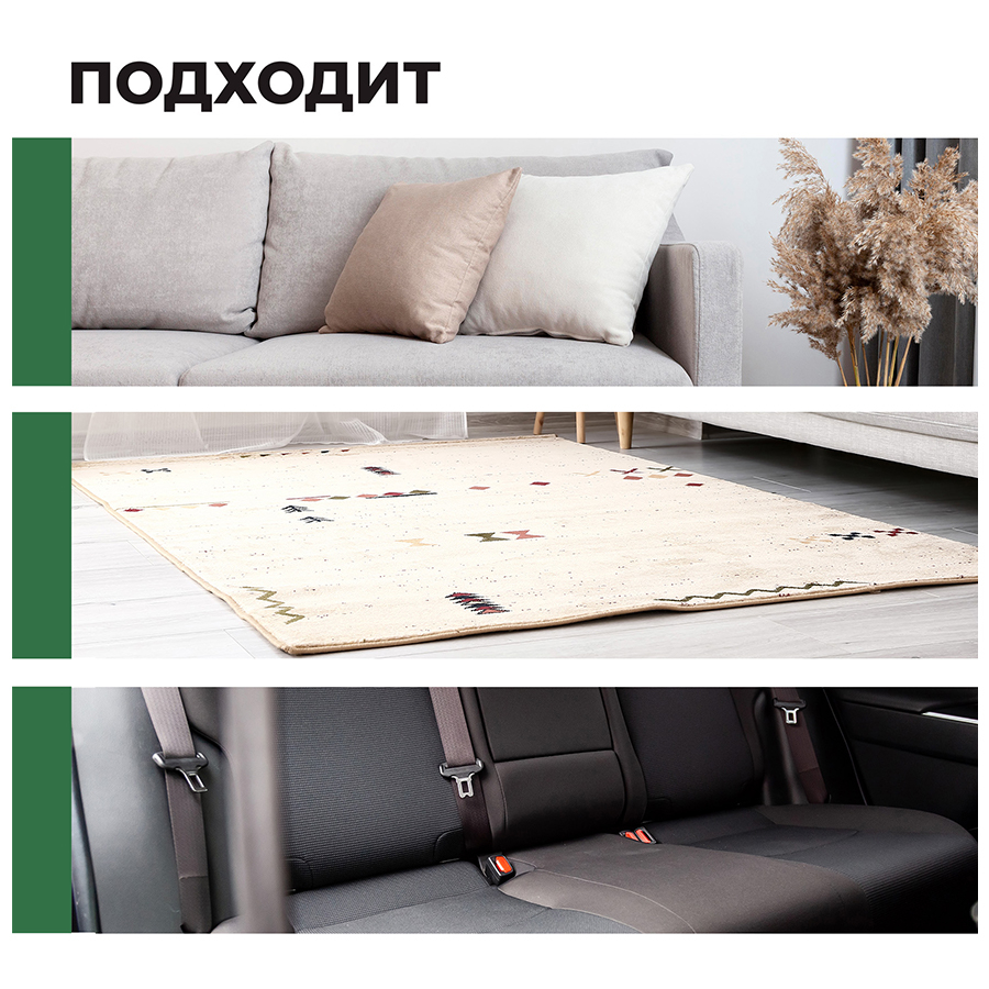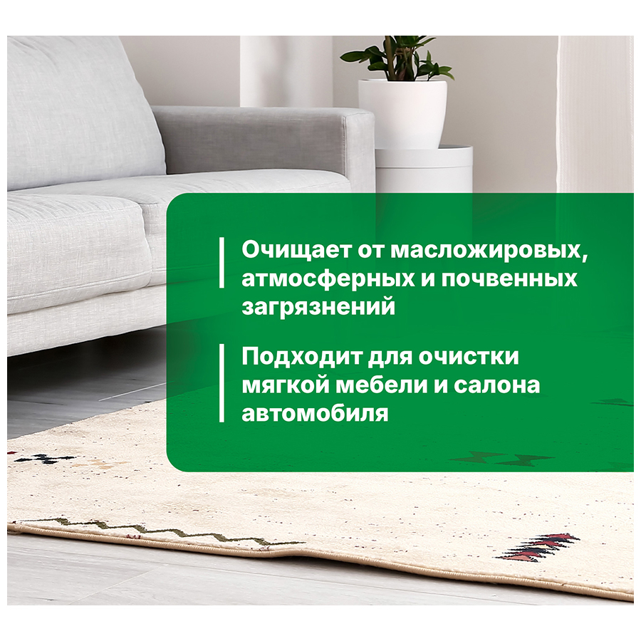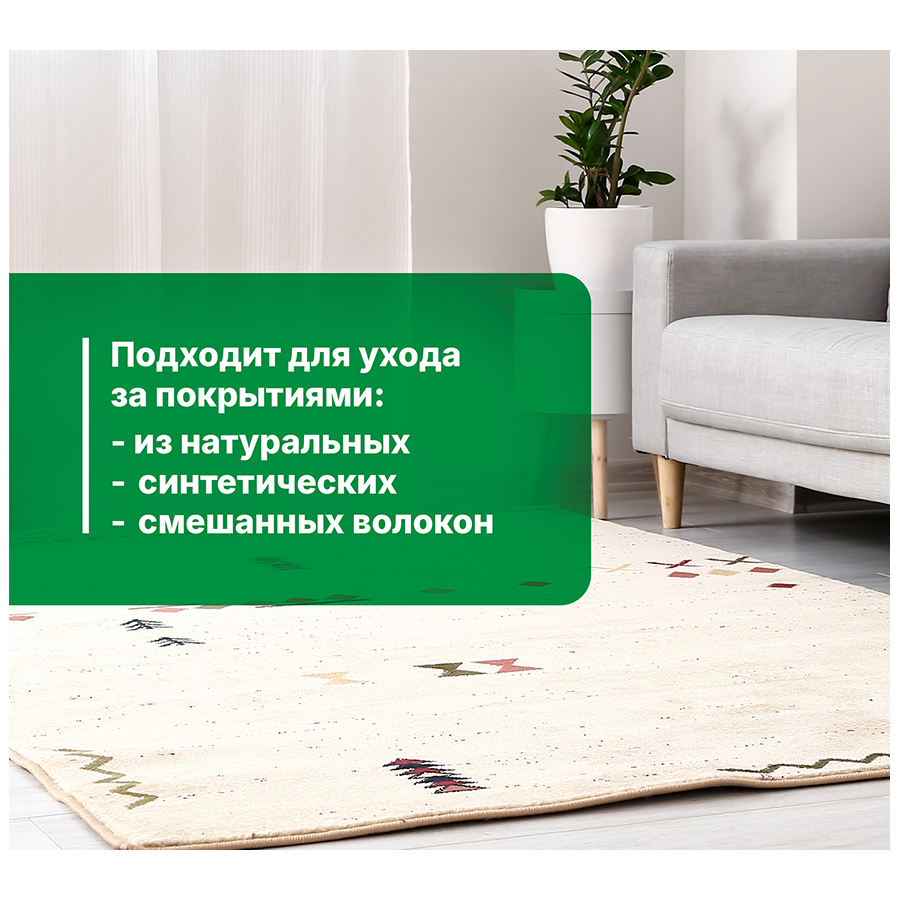 Для периодической чистки натуральных и синтетических напольных покрытий, а также текстильных изделий: ковров, ковролина, мягкой мебели, салона автомобиля.