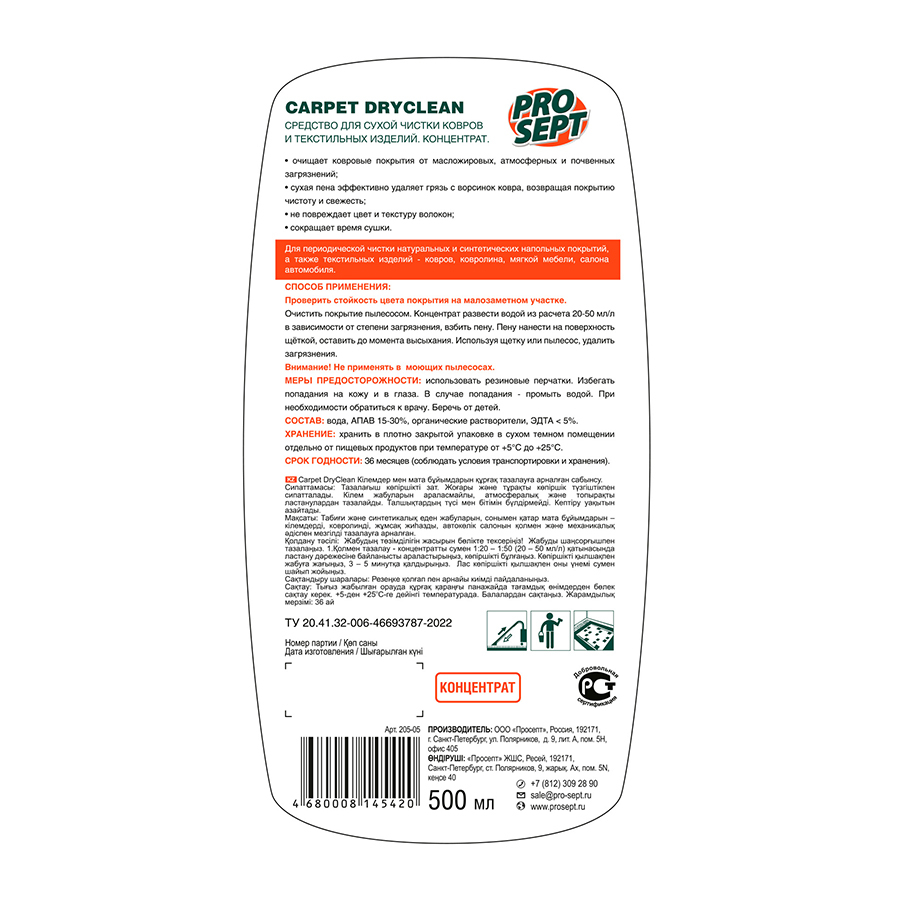 - Очищает ковровые покрытия от масложировых, атмосферных и почвенных загрязнений.