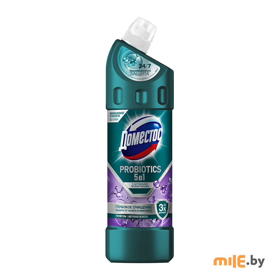 Гель Доместос (Domestos) Цветочная свежесть – это универсальное чистящее средство для уборки в квартире. Средство с активными пробиотиками предназначено для очистки сантехники: унитаза, ванн, раковины. Доместос гель универсальный подойдет для мытья и очищения разных поверхностей: стен, плитки, полов. Чистящее средство универсальное Цветочная свежесть разработано на основе инновационной технологии без хлора. Доместос для унитаза гель универсальный антибактериальный обеспечивает глубокое очищение поверхностей от загрязнений. Средство для унитаза чистящее защищает поверхности от налета и микробов до 3-х раз дольше. Густой гель нового поколения для пола, ванной и туалета убивает до 99,9% микробов. Чистящее средство для плитки с активными пробиотиками блокирует неприятные запахи. Универсальное чистящее средство для уборки дома Probiotics 5в1 обеспечивает удаление известкового налета. Чистящее средство для унитаза Доместос Цветочная свежесть – это длительная активная защита от загрязнений, налета и микробов.