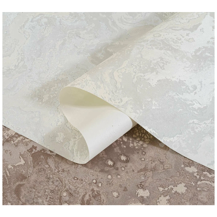 Характер коллекции - современный, яркий и невероятно самобытный. Благодаря разноплановой переливчатой фактуре создается эффект «космических» узоров на поверхности планеты Венера. Детальная прорисовка дополнена тончайшим тиснением, вместе с сияющим глиттером и разноцветными перламутрами. Подходит для все видов помещений.