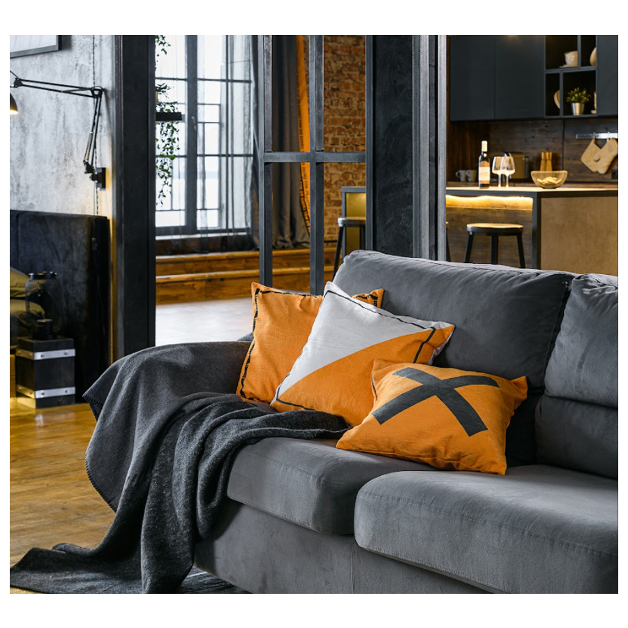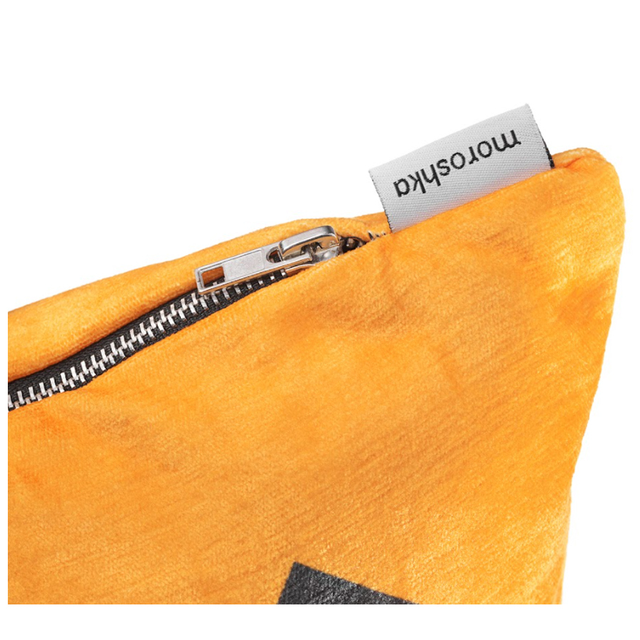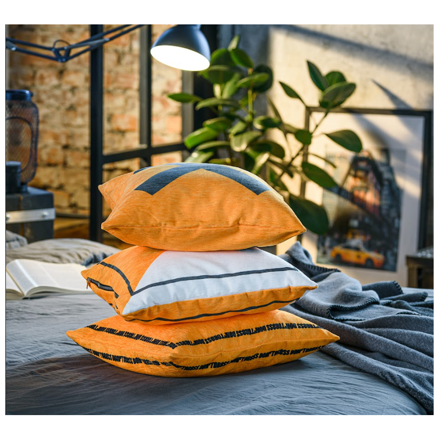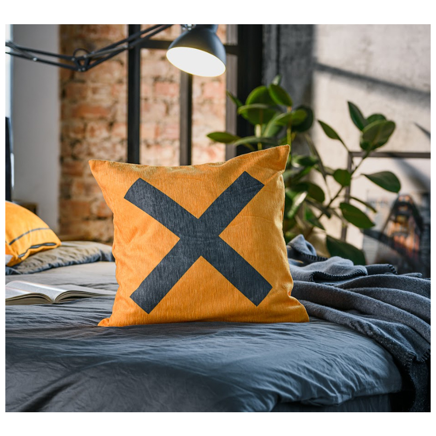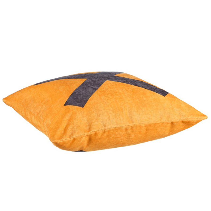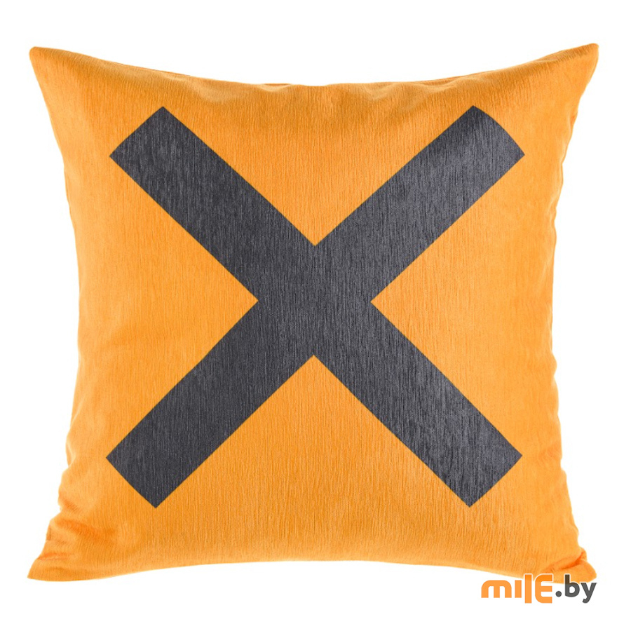 Шенилловая декоративная подушка Don`t cross с мелким ворсом. Подушка оранжевого цвета с запрещающим знаком «Х» в центре. Съемный чехол с контрасной застежкой-молнией черного цвета можно стирать в машинке при соблюдении температурного режима. Наполнитель — гипоаллергенный холлофайбер.