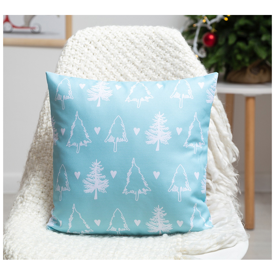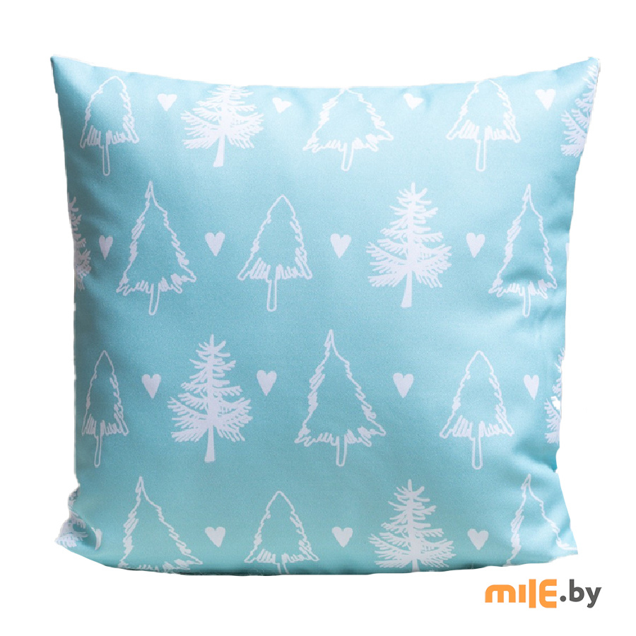 Декоративная подушка с изображением елочек - отличное дополнение к зимнему или новогоднему декору. Изделие выполнено в неярких пастельных тонах и красиво смотрится на диване или кресле любого цвета.