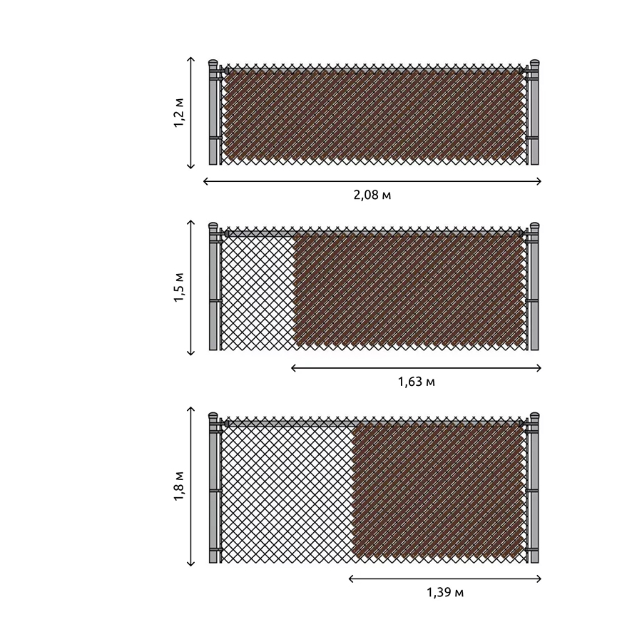 Ширина ленты - 55 мм, идеально подходит для забора из сетки рабицы с ячейкой от 52 до 57 мм.