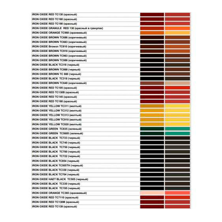 Цветные окисные пигменты являются наиболее востребованными благодаря своим свойствам: свето-, погодоустойчивые, устойчивые по отношению к агрессивной среде, создаваемой сильнощелочным вяжущим (цементом), не растворяются в воде затворения и в процессе изготовления окрашенного бетона равномерно и устойчиво распределяются в нем. С помощью оксидных пигментов, используемых для окраски бетона, можно получить практически любой тон или оттенок. Следует обратить внимание на время подачи пигмента в бетоносмеситель. Хорошо себя зарекомендовал на практике метод, при котором пигмент смешивается с заполнителями в течение 15 сек, затем добавляется цемент. В дальнейшем процесс перемешивания происходит так же, как и в случае непигментированного бетона. Для достижения однородности окрашивания бетонной смеси имеет значение время перемешивания, так, в бетоносмесителе принудительного действия этот период составляет от 1.5 до 2 минут.