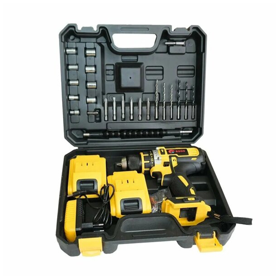 Комплект поставки: шуруповерт, 2 аккумулятора, зарядное устройство, набор насадок, пластиковый кейс.