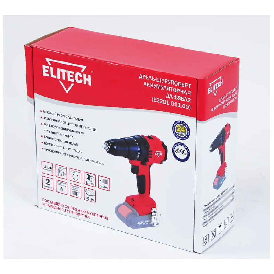 Аккумуляторная дрель-шуруповерт Elitech ДА 18БЛ2 (E2201.011.00) без АКБ и ЗУ