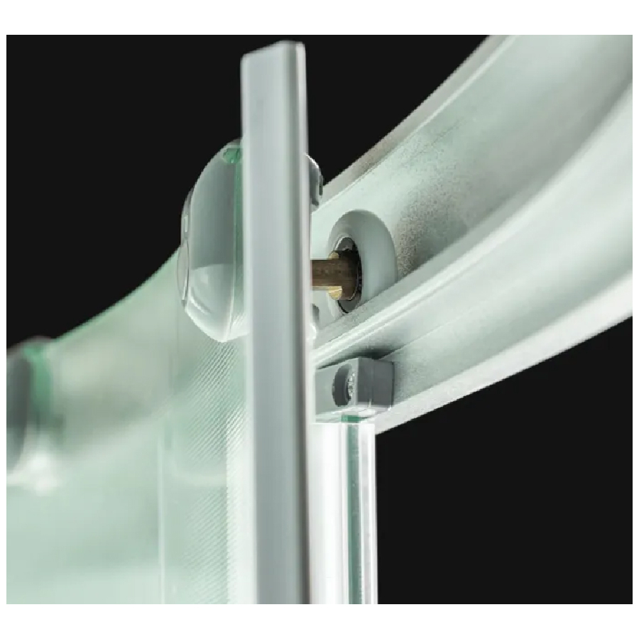 Раздвижные двери с одинарными роликами и матовым стеклом обеспечивают легкость открытия и закрытия, а также непрозрачность для большего уединения.