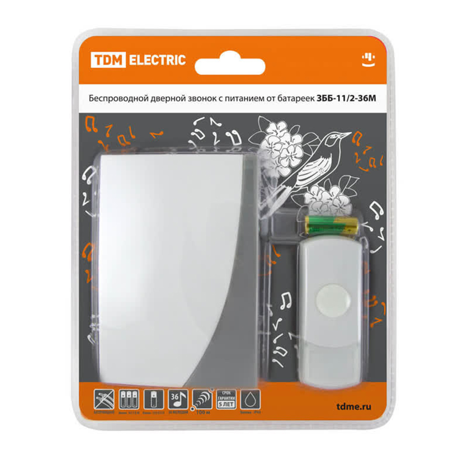 Звонок беспроводной на батарейках ЗББ-11/2-36М TDM представляет собой удобное решение для использования в качестве дверного звонка или устройства внутреннего вызова.