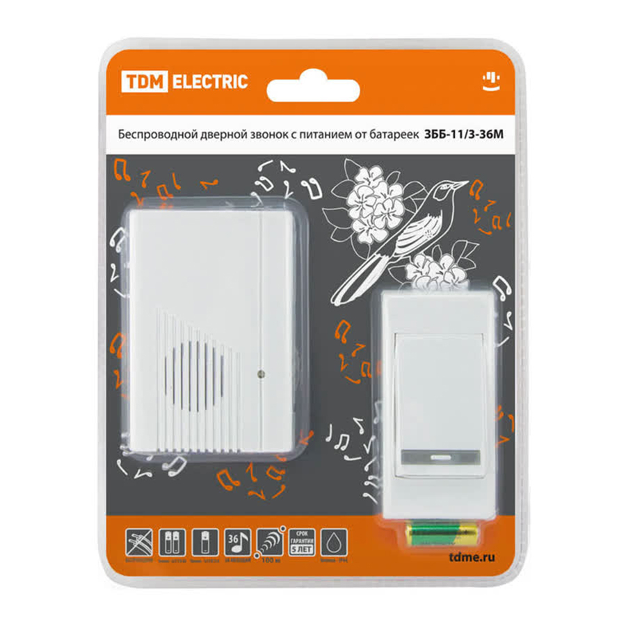 Звонок ЗББ-11/3-36М (беспроводной, батарейный) TDM SQ1901-0003 — идеальное решение для вашего дома или офиса. Этот современный дверной звонок обеспечивает надежное и удобное оповещение о приходе гостей, не требуя сложной проводки и установки.