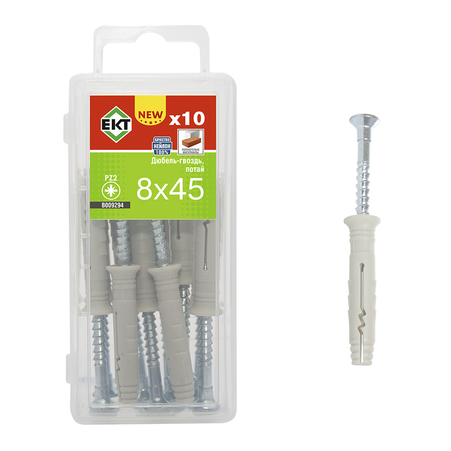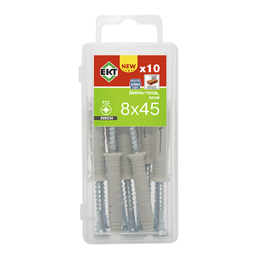 Дюбель быстрого монтажа с гвоздевым шурупом, потай 8х45, НЕЙЛОН, ЕКТ (упак/10шт) B009294