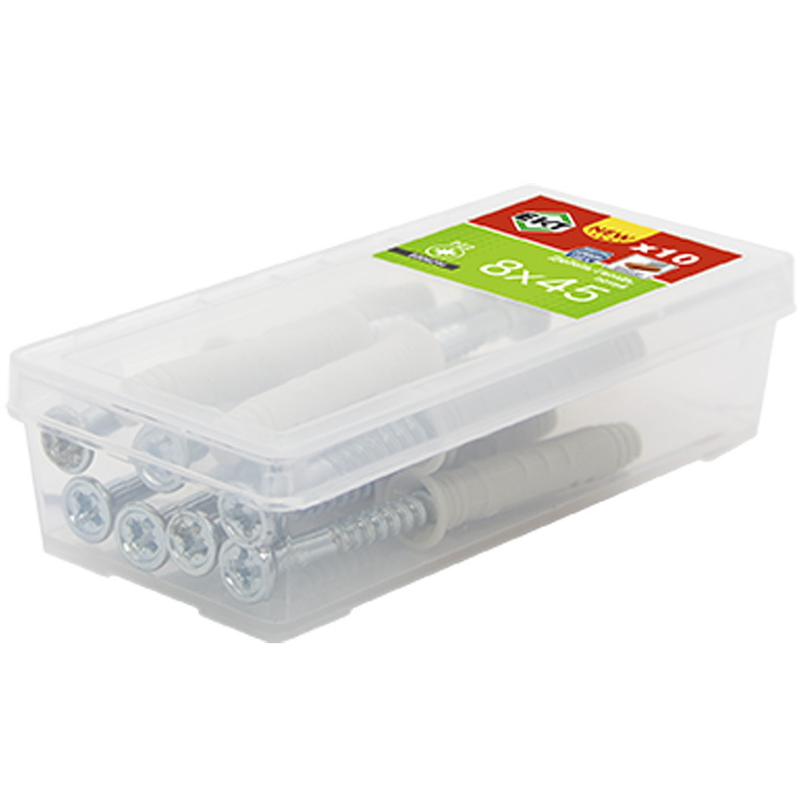 Дюбель быстрого монтажа с гвоздевым шурупом, с потайной головкой, 8х45 мм, нейлон, в пластиковом контейнере фасовкой 10 шт. B009294
