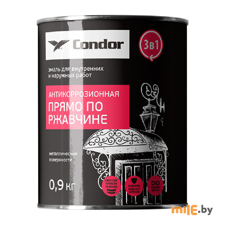 Эмаль по ржавчине 3 в 1 Condor светло-серая 0,9 кг
