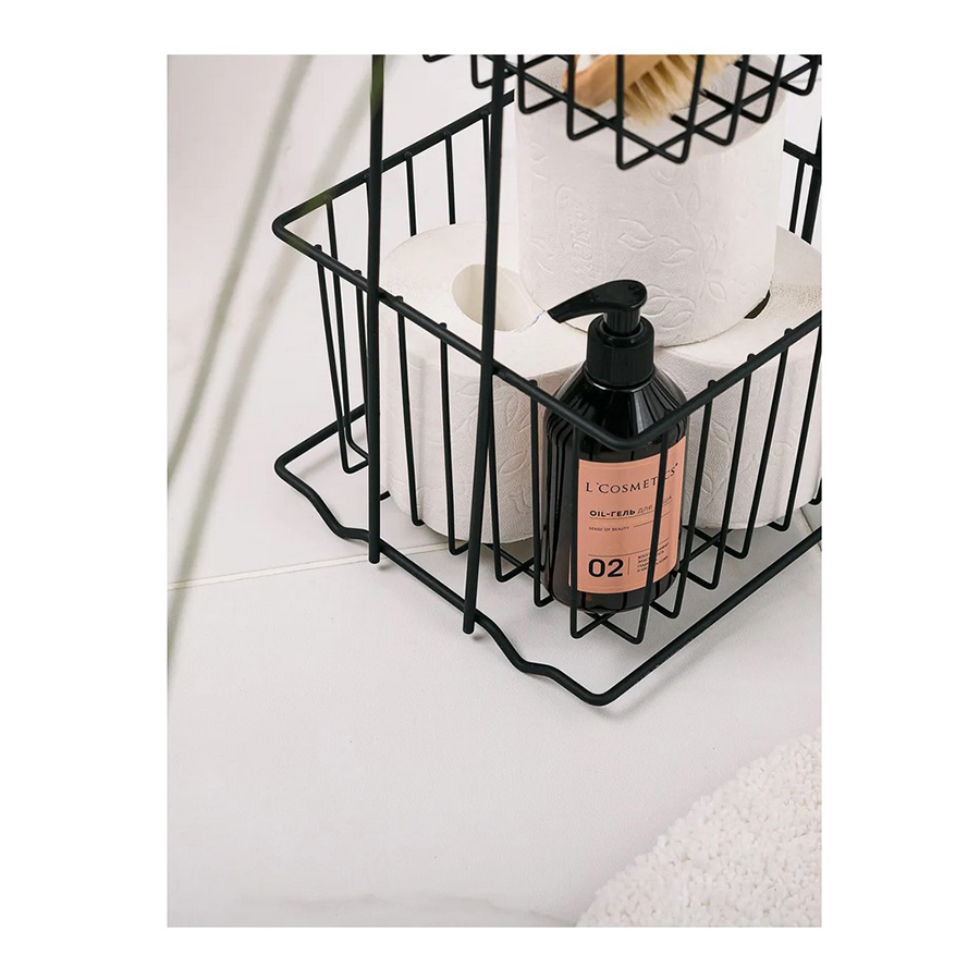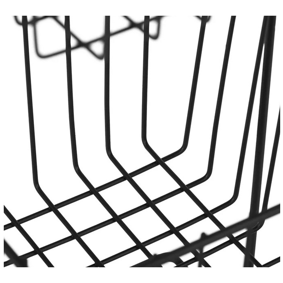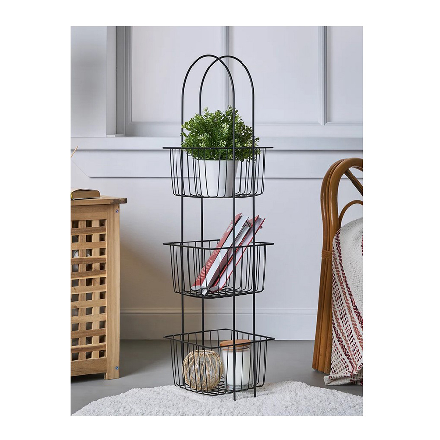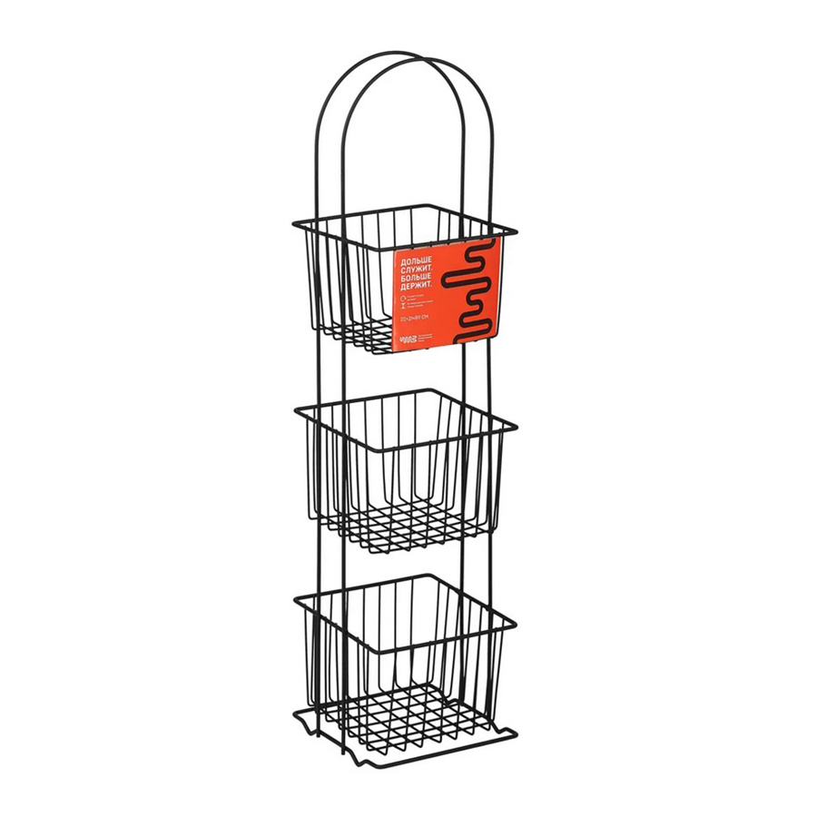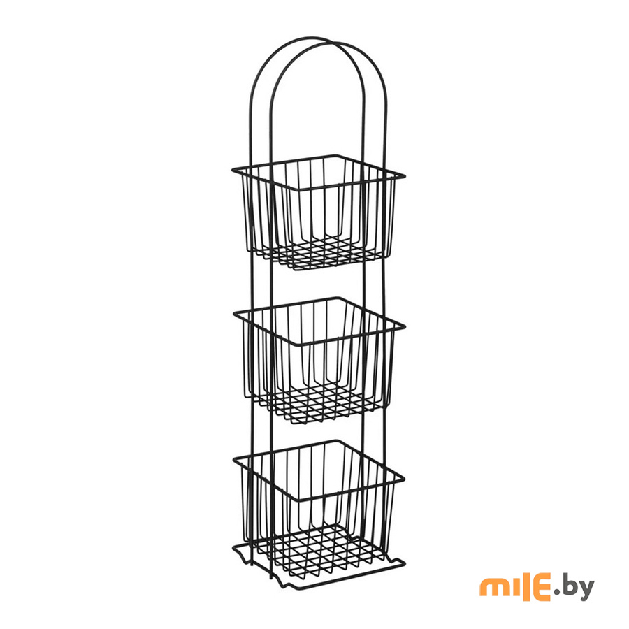 Стеллаж напольный трёхуровневый. Сделан из прочной стали чёрного цвета. Изделие не ржавеет, выдерживает до 20 кг и не деформируется. Верхнее защитное покрытие предотвращает от появления царапин и трещин и обеспечивает долгий срок службы. Российское производство гарантирует надёжное качество. Три яруса позволяют разместить на стеллаже большое количество вещей, создавая комфортную систему хранения. Полки стеллажа выполнены в виде небольших корзинок и станут оригинальной деталью интерьера. Максимальная нагрузка, кг: 21.