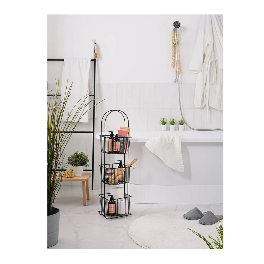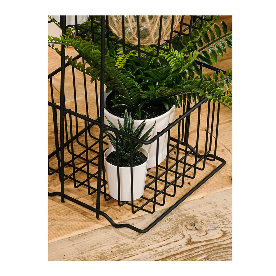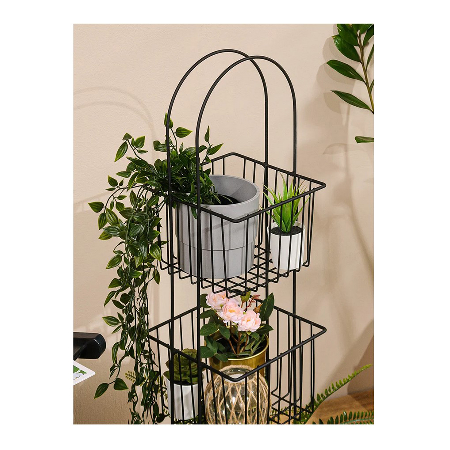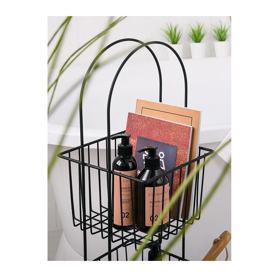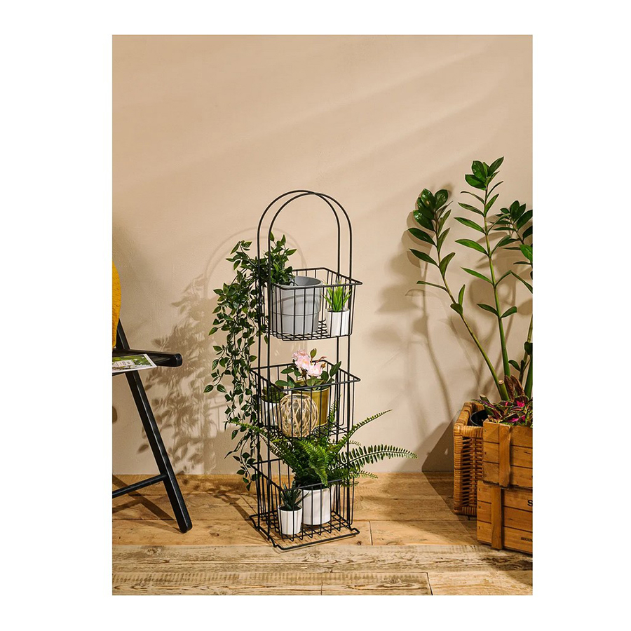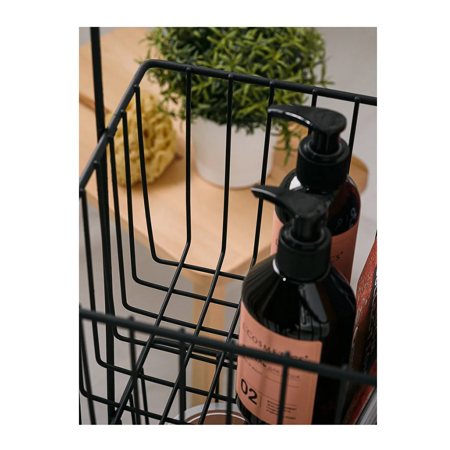 Стеллаж напольный трёхуровневый. Сделан из прочной стали чёрного цвета. Изделие не ржавеет, выдерживает до 20 кг и не деформируется. Верхнее защитное покрытие предотвращает от появления царапин и трещин и обеспечивает долгий срок службы. Российское производство гарантирует надёжное качество. Три яруса позволяют разместить на стеллаже большое количество вещей, создавая комфортную систему хранения. Полки стеллажа выполнены в виде небольших корзинок и станут оригинальной деталью интерьера. Максимальная нагрузка, кг: 21.