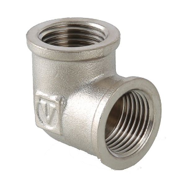 Угловой латунный никелированный фитинг. Резьба – внутренняя/внутренняя