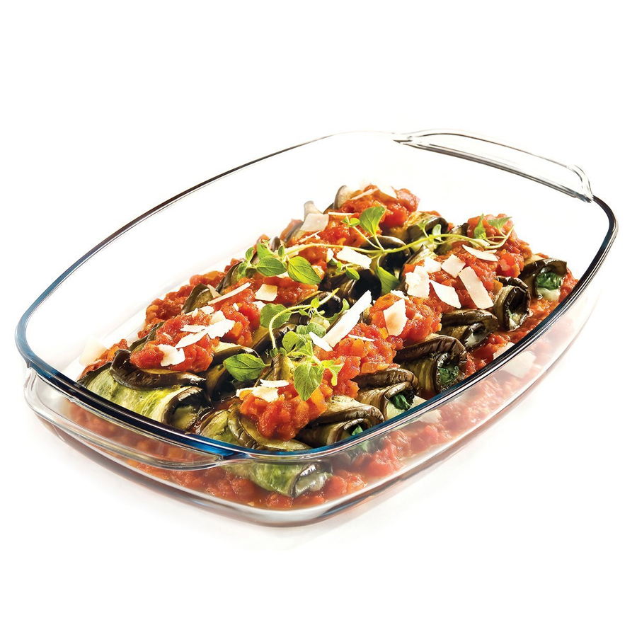 Стеклянная прямоугольная форма изготовлена из жаростойкого стекла и подходит для приготовления блюд в микроволновой печи, газовой и электрической духовке. Благодаря прозрачности стекла, за едой можно наблюдать при ее готовке, еду можно видеть при подаче, хранении. Используя эту форму, вы можете как приготовить пищу, так и изящно подать ее к столу, не меняя посуды.
