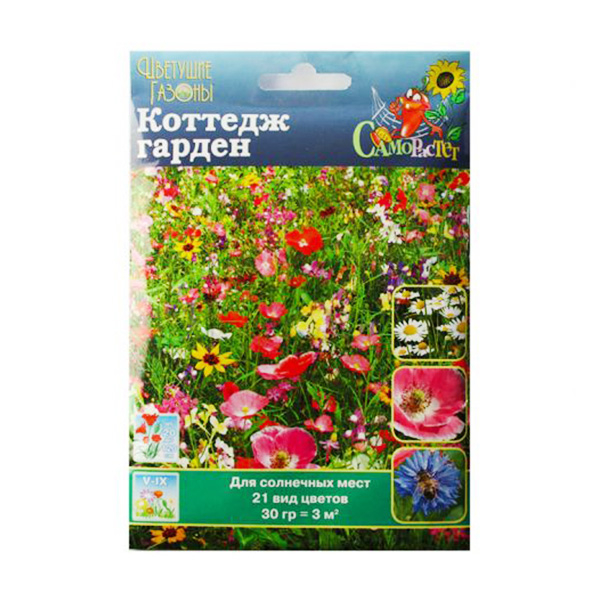 Газон "Коттедж Гарден" зацветает через 3-4 недели после посева.21 вид цветов.
