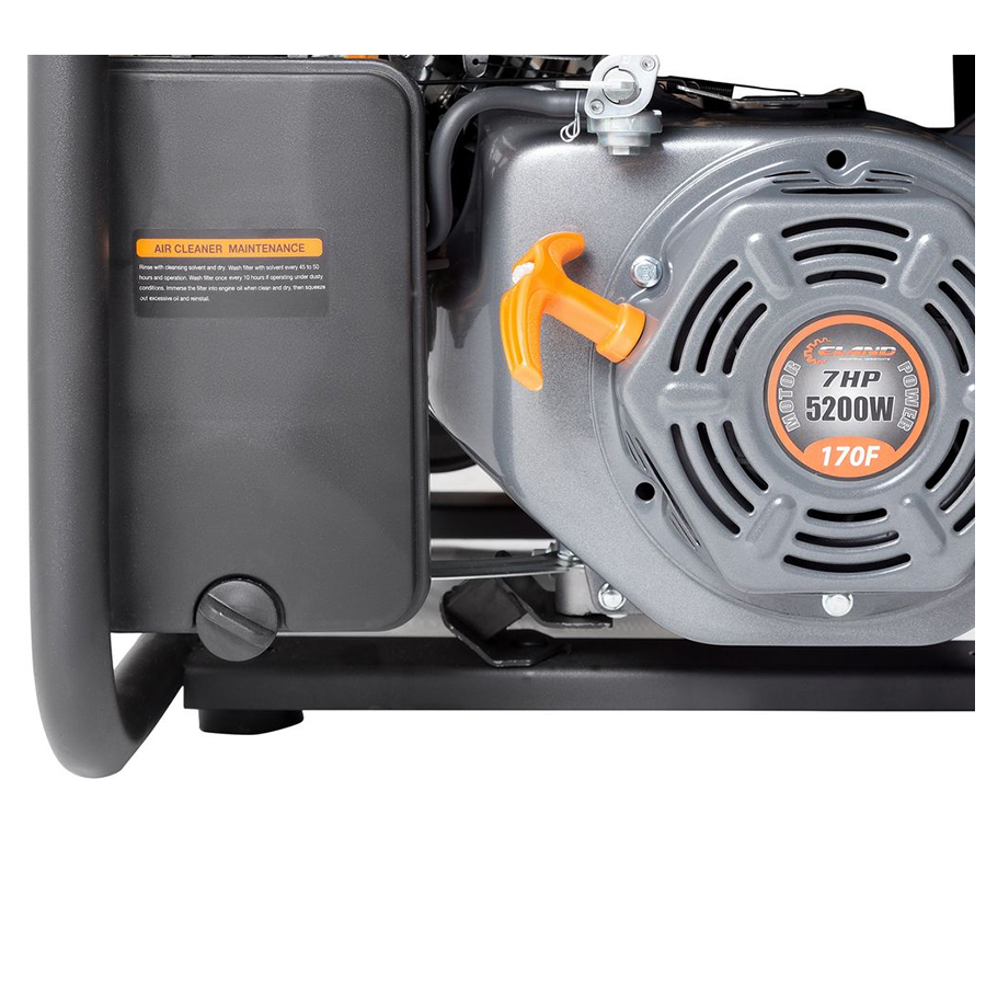 Бензиновый генератор снабжен 4-х тактным бензиновым двигателем с верхним расположением клапанов и является конструктивным аналогом двигателя HONDA, нижнее расположение распредвала не требует добавления масла в топливо. Поршни мотора усилены чугунными гильзами, что существенно увеличивают моторесурс. Медная обмотка статора и ротора альтернатора увеличивает КПД генератора по сравнению с генераторами с алюминиевыми обмотками. Обеспечивает меньший нагрев и большую стойкость к неблагоприятным условиям окружающей среды: высокой температуре, запыленности и влажности. Защита от низкого уровня масла в картере. Система стабилизации напряжения на выходе AVR препятствует просадке напряжения при пиковых нагрузках подключенного к генератору электрооборудования. Защита от перегрузок защищает от выхода из строя наиболее дорогие узлы и детали. Усиленная рама защищает от повреждения бензобак и основные узлы генератора. Относительно низкий уровень шума.