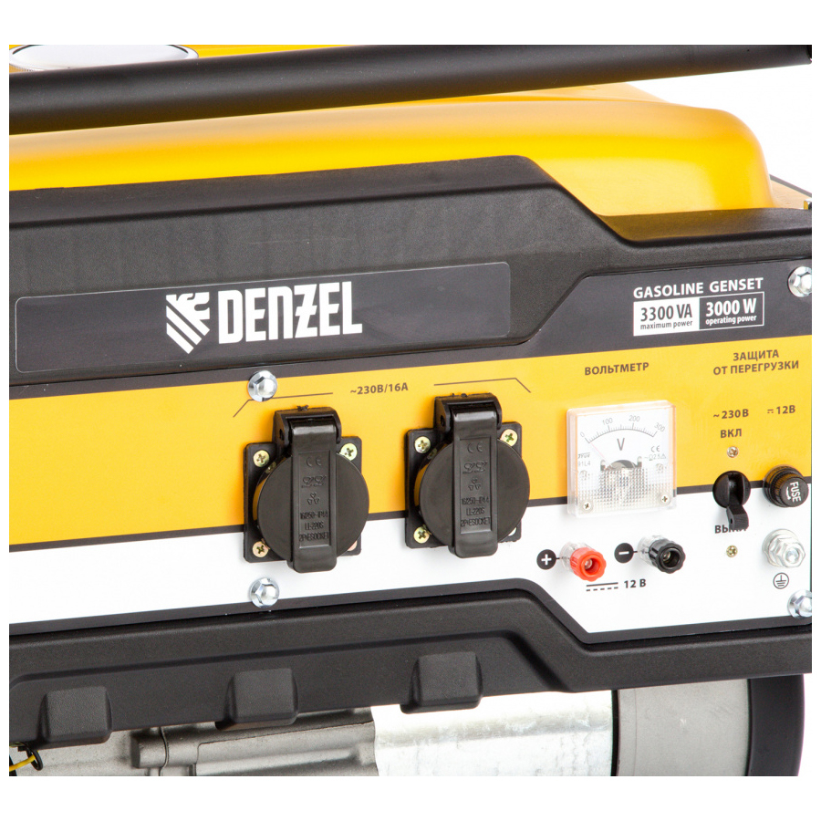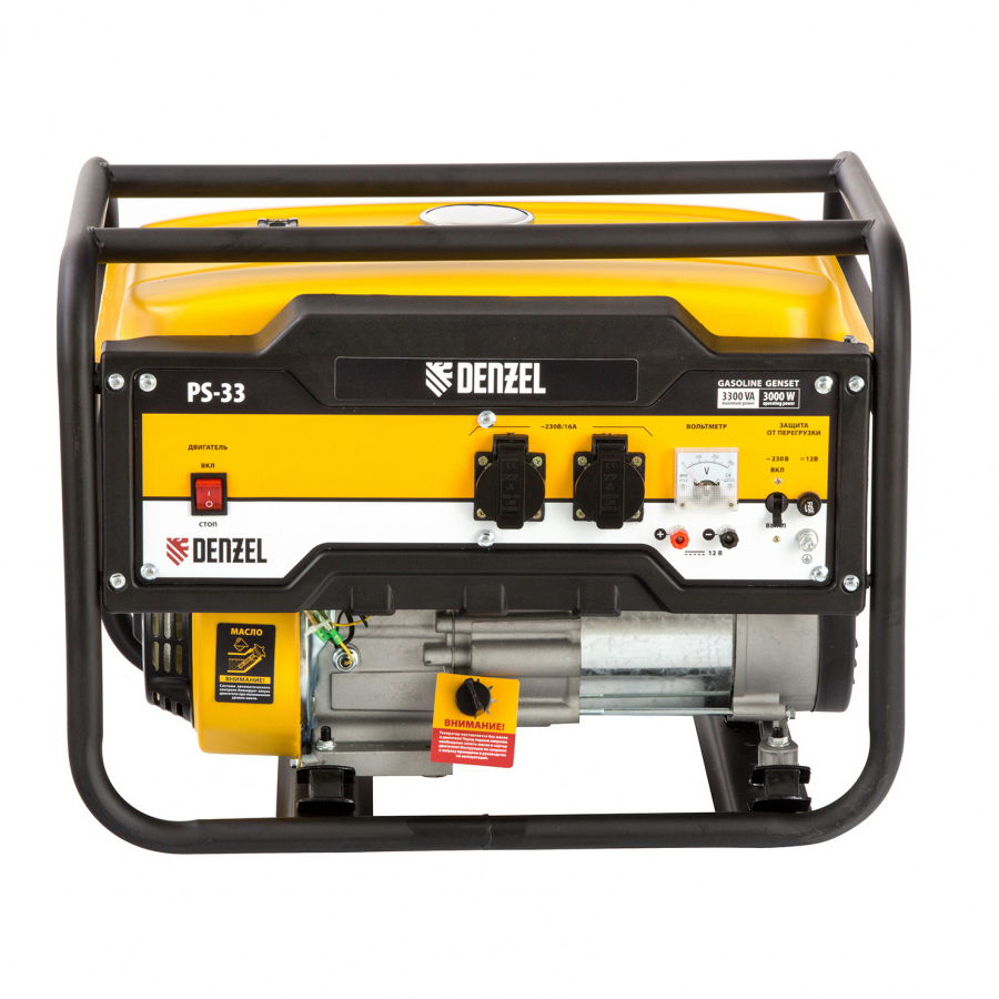 Генератор бензиновый Denzel PS 33 946834 максимальной мощностью 3,3 кВт при параметрах сети 230 В, оснащен ручным стартером и увеличенным бензобаком на 15 л. Предназначен для автономного электроснабжения однофазным током маломощного оборудования. Это экономичная и простая в использовании модель, оптимально подходящая для дачного участка, домашней мастерской, кемпинга и рыбалки, а также строительной площадки.
