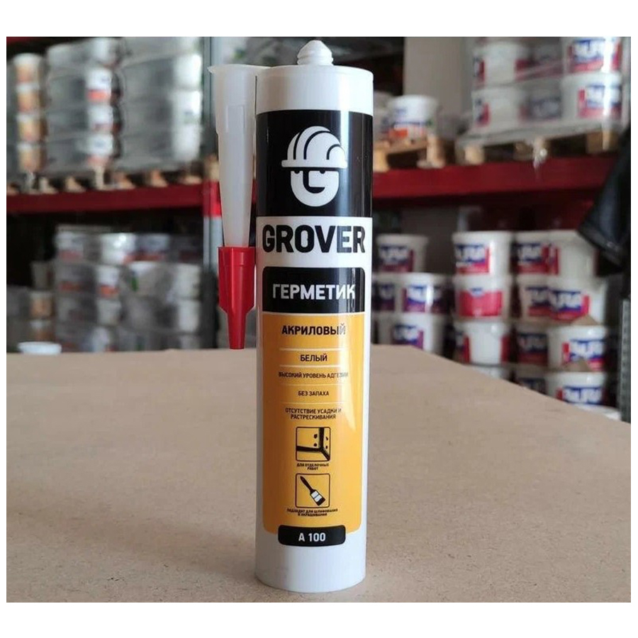 Герметик акриловый GROVER A100 белый 300 мл предназначен для заполнения швов между листами гипсокартона. Служит для заполнения трещин и малоподвижных швов в стенах и потолках из бетона, кирпича, гипса, дерева, кафеля. Применяется для заполнения швов по периметру оконных рам и дверных коробок.
