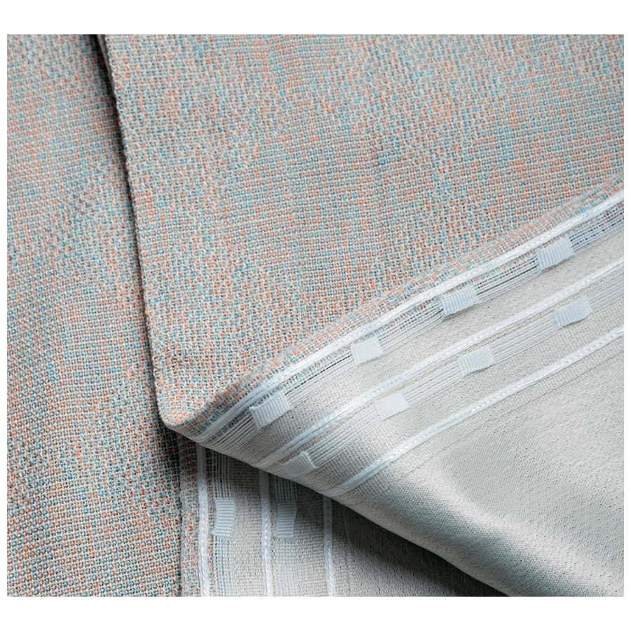 Шторы легки в уходе и просты в эксплуатации. Верхний край украшен шторной тесьмой шириной 59 мм с двумя рядами петель, позволяющей корректировать высоту и формировать равномерные складки.